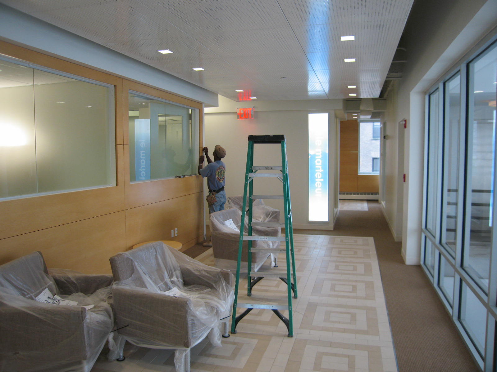 Well, luckily we got the three lightboxes up and working before [hurricane] Sandy hit. Today we received the photos so I am sharing a shot of our elevator lobby. Thank you for all your help during our purchase.
